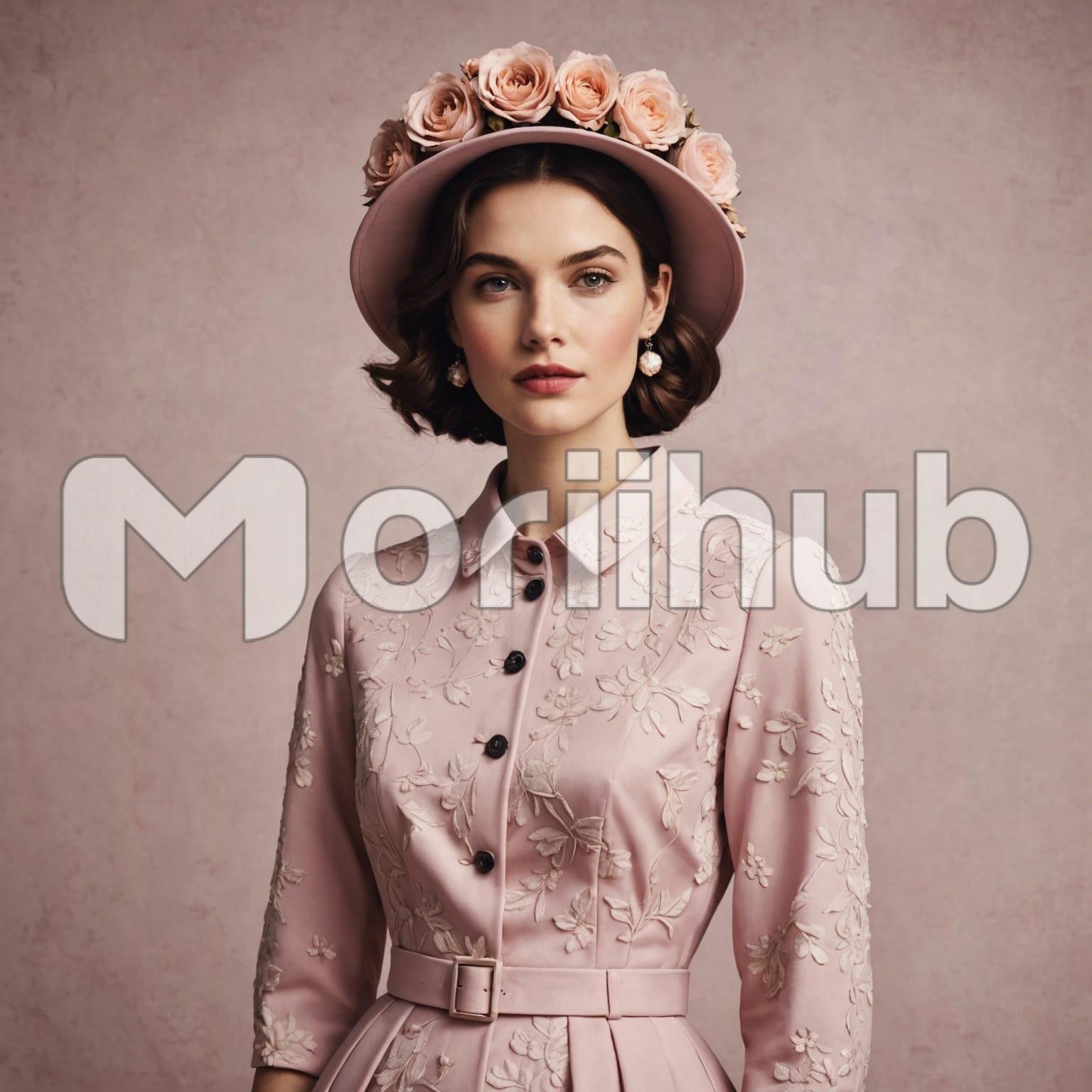 In a portrait of serene beauty, a stunning woman gazes ahead with a quiet confidence against a plain backdrop. Her short hair frames her face with chic simplicity, while a delicate flower laurel adorns her hair, adding a touch of natural elegance. With an enigmatic gaze fixed forward, she exudes grace and poise, her presence captivating and magnetic. Against the unadorned canvas of the background, she stands as a radiant symbol of strength and beauty, embodying timeless allure and sophistication.