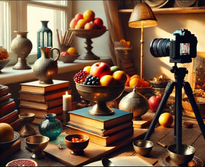 Books make great props for adding character and depth to photos. Open a book to a meaningful passage or stack a few to add layers and height to a product or still-life shot. Books are perfect for creating cozy, inviting scenes, especially in lifestyle or food photography.