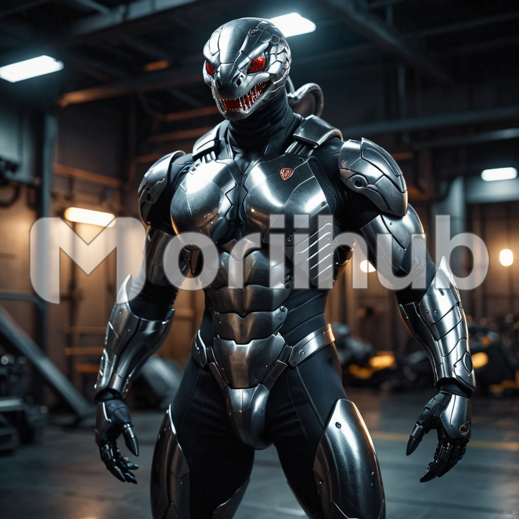 A robot stands sentinel, its form a sleek fusion of metal and innovation, its head fashioned in the likeness of a serpent. With eyes that gleam like polished onyx, it surveys the world with a calculated gaze, sensors attuned to every movement. Despite its artificial nature, there’s an undeniable sense of life in its design, a testament to the ingenuity of its creators and the fusion of technology and nature.