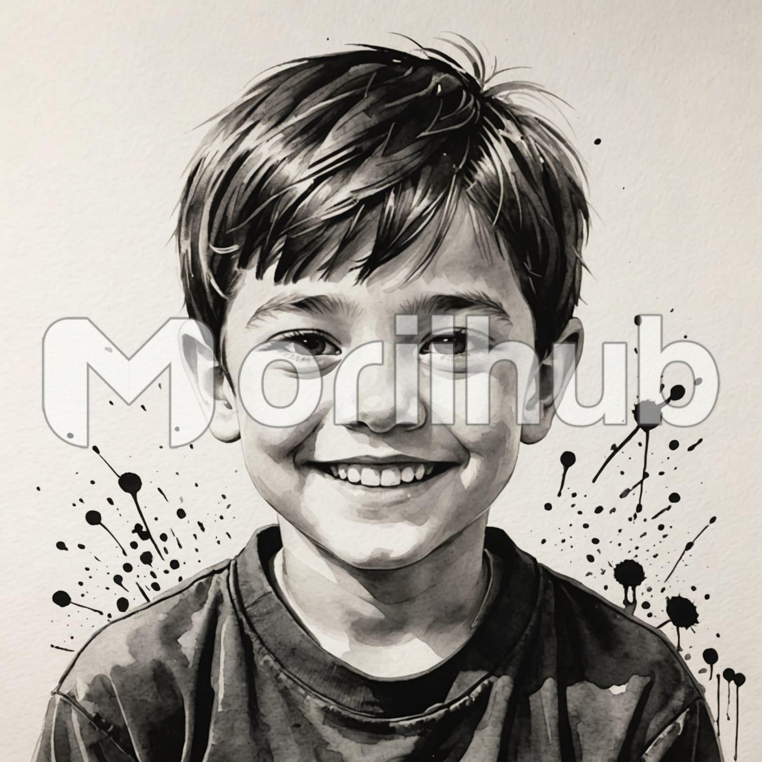In the sketch, a cute boy’s infectious smile radiates warmth and joy from the paper. His features are rendered with gentle lines that capture his youthful charm and happiness. The artist’s strokes highlight his bright eyes and the curve of his smile, conveying a sense of innocence and playfulness. Against the simplicity of the paper’s background, his smile becomes the focal point, inviting viewers to share in his cheerful spirit. The sketch evokes a sense of delight and positivity, encapsulating a moment of pure happiness frozen in artistic expression.