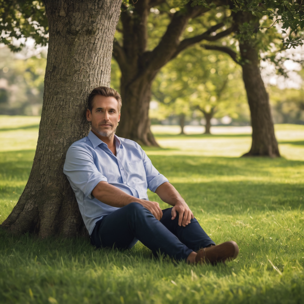 Beneath the sprawling branches, a man finds solace in the shade of a majestic tree. The dappling sunlight gently caresses his peaceful countenance as he reclines, a serene expression reflecting the tranquility of the moment. A sense of quiet contemplation envelops him, his eyes closed in restful repose. Nature’s symphony provides a soothing backdrop, rendering this idyllic scene, where the union of man and tree harmonizes into a tranquil oasis of relaxation and introspection.