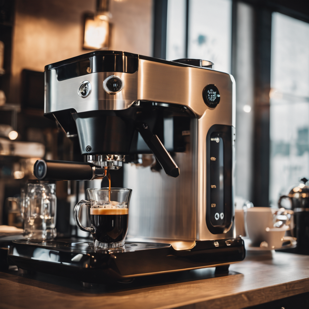 On the tabletop, a sleek coffee machine stands, its metallic surfaces gleaming under the soft light. With precision, it dispenses a stream of aromatic coffee into a waiting mug, filling the air with the rich scent of freshly brewed java. The gentle whirring and hiss of steam add to the ambiance, creating a moment of indulgence and anticipation. In this simple act, the ritual of morning coffee becomes a comforting and satisfying experience.