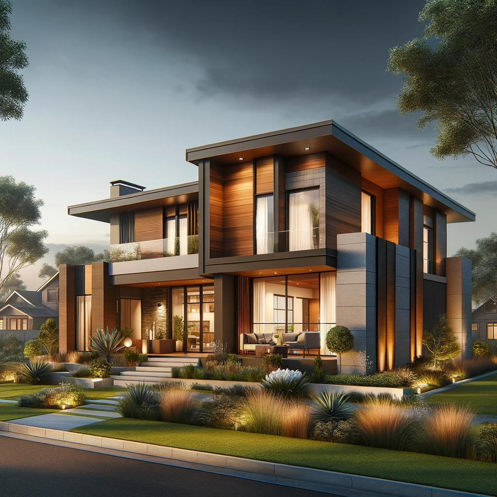 A modern home embraces elegance and warmth with a brown color scheme, both outside and in. Its exterior boasts a blend of dark and light brown tones, harmonizing with nature. Inside, rich brown hues adorn the walls and furnishings, creating a cozy yet sophisticated atmosphere, inviting relaxation and comfort.