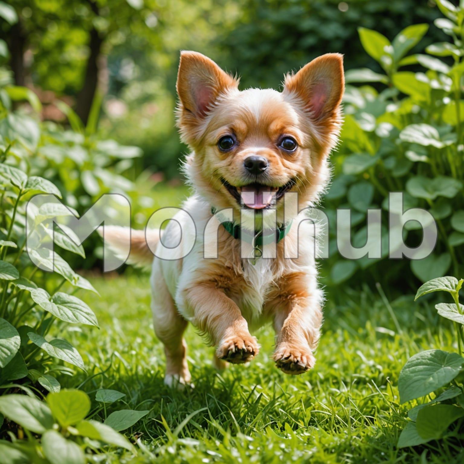A cute dog races across a lawn, its playful energy bringing the scene to life. The grass beneath its paws is a vibrant green, and the dog’s movement creates a joyful blur of motion. Around the lawn, leaves on the surrounding plants sway gently, stirred by the rush of the dog’s passage. The dog’s ears bounce with each step, and its expression radiates pure happiness as it enjoys the freedom of the open space. The setting feels lively, with nature and the dog in perfect sync.