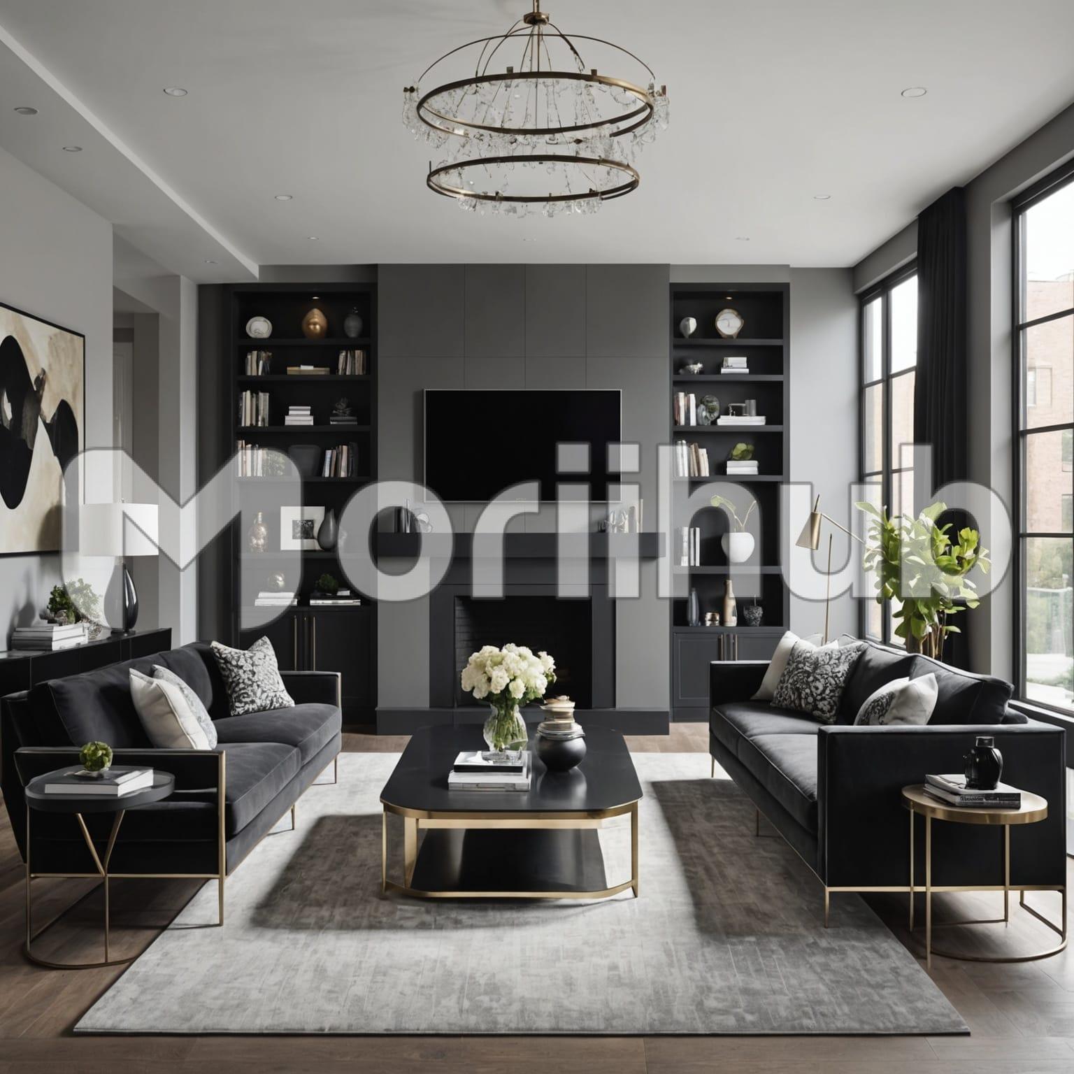 In the cozy living room, plush couches are arranged around a central coffee table, creating a welcoming space for relaxation. On the coffee table, a flower pot adds a touch of freshness with its vibrant blooms. Directly in front of the seating area, a shelf is mounted on the wall, holding an array of books that lend a touch of intellectual charm to the room. The TV mounted on the wall is turned off, its dark screen blending into the background, contributing to the room’s calm and inviting atmosphere.