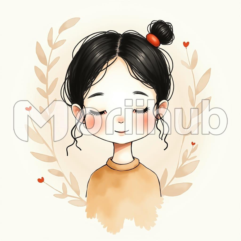 A cute little girl is portrayed in a cartoon style, her eyes gently closed as if lost in a moment of peace. Her round cheeks and soft expression exude innocence and sweetness. Delicate lines outline her small face, while her hair is styled in a playful manner, framing her face with soft curves. The simplicity of the design highlights her endearing features, making her look almost dreamlike. The scene captures a sense of calm and pure childhood joy, evoking warmth and tenderness.