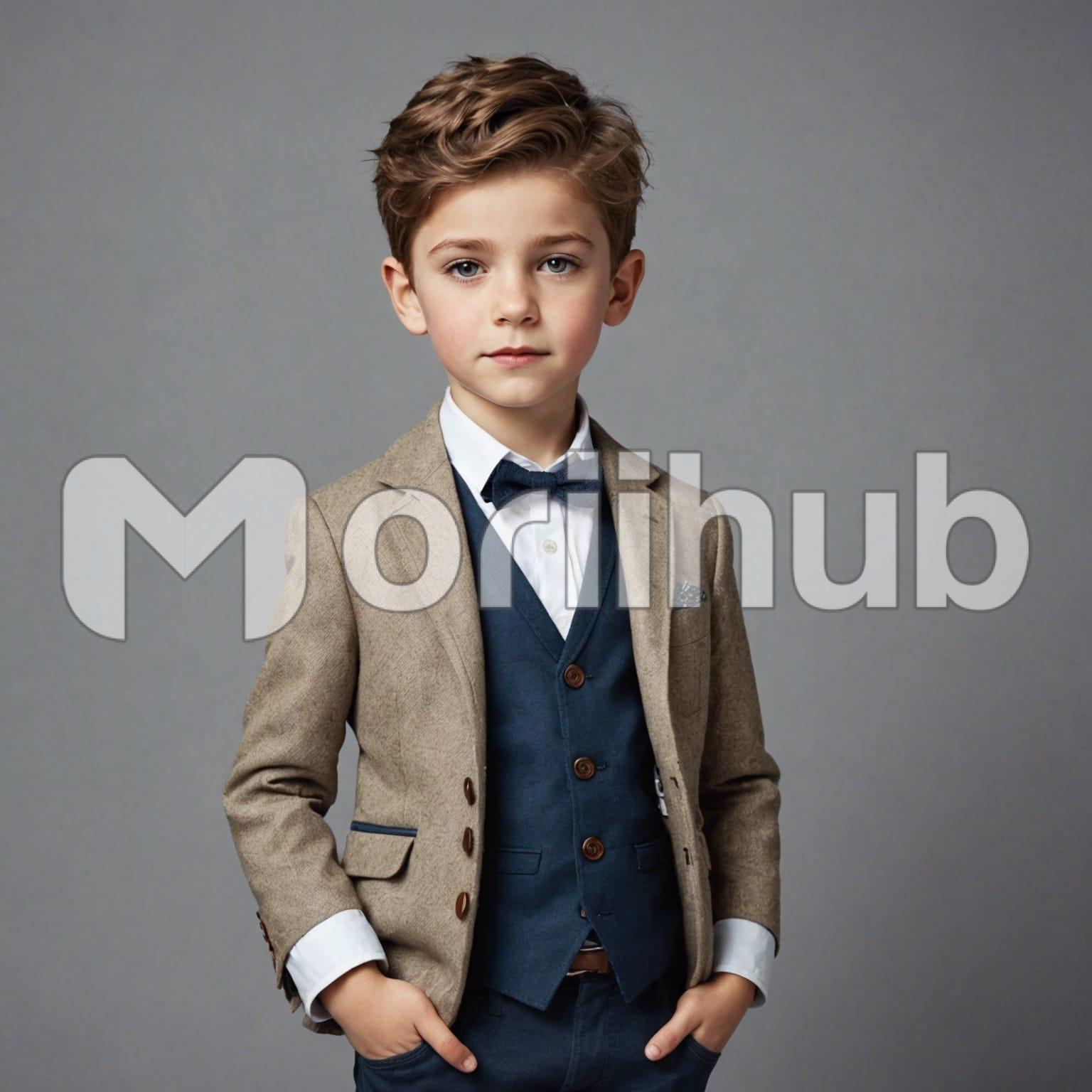 Dressed to impress, a cute little boy exudes charm in a miniature suit, his tiny hands confidently tucked into his pockets. The tailored ensemble, perfectly fitted to his pint-sized frame, speaks volumes of his budding sense of style. With each step, he radiates a youthful elegance that belies his tender age, turning heads wherever he goes. His demeanor, a blend of sophistication and innocence, captures hearts and imaginations alike, a dapper reminder that fashion knows no bounds, even in the world of the littlest trendsetters.