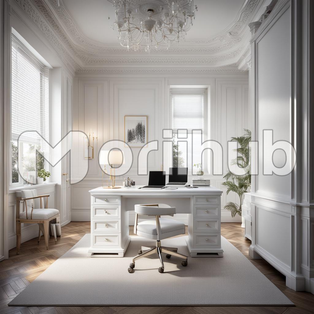 A room designed predominantly in white can create a spacious and serene atmosphere, ideal for concentration and creativity. Placing the desk in a corner maximizes space efficiency, offering a dedicated work area that feels open yet focused. White walls can be complemented with accents like plants or artwork to add warmth and personality, enhancing productivity and comfort in your workspace.