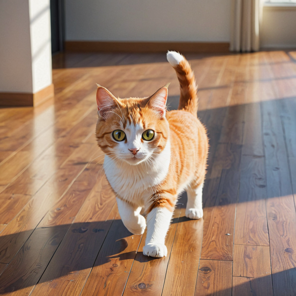 Gracefully, a cat pads across the room, its movements silent yet purposeful. With each step, its sleek fur catches the light, revealing hints of hidden patterns. Tail held high, it exudes confidence and independence as it navigates the indoor terrain with ease. The room seems to shrink in comparison to its regal presence, as it effortlessly commands attention with every graceful stride. It’s a scene of quiet elegance and feline grace in the comfort of indoor surroundings.