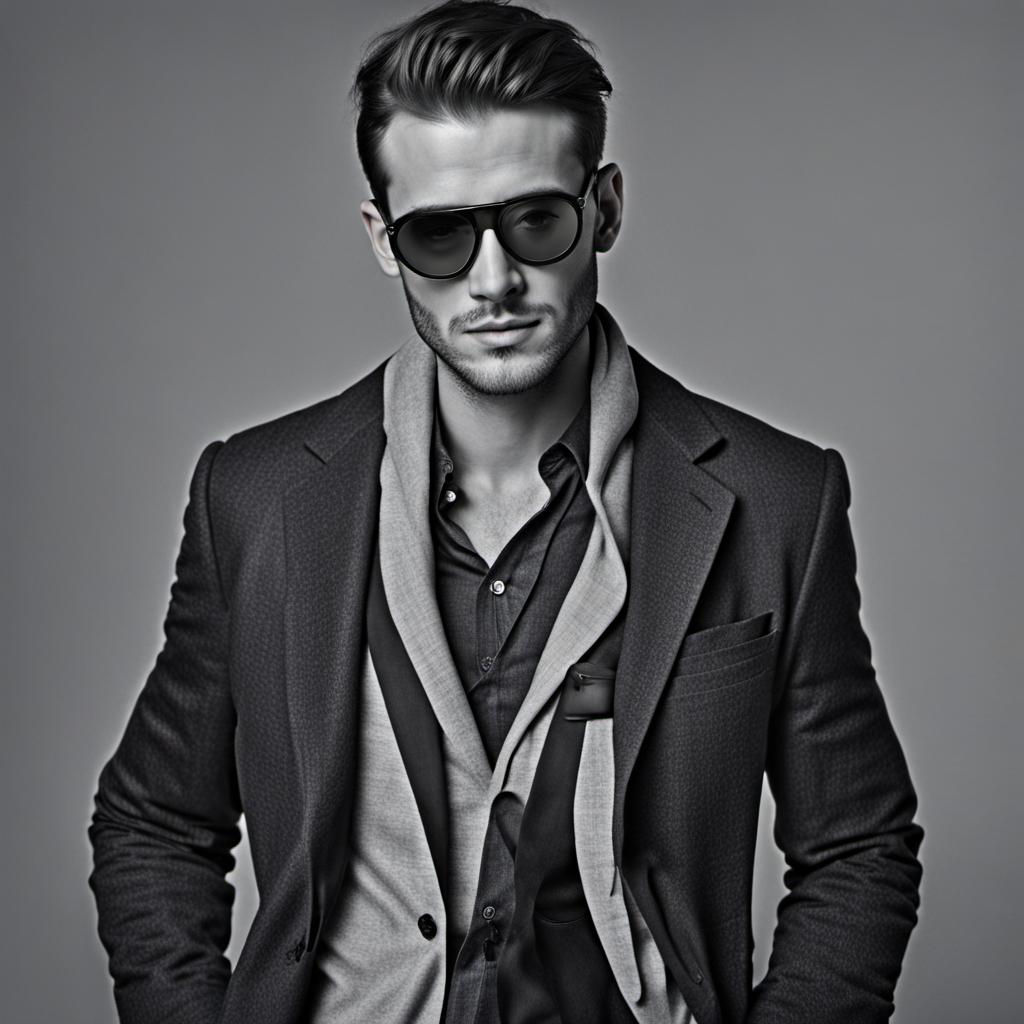 Amidst the simplicity of a plain background, a scene unfolds with understated elegance—a stylish man exuding confidence in a meticulously tailored suit. His hands casually rest in pockets, contributing to an air of nonchalant charisma. The subdued background accentuates his presence, allowing the focus to linger on the details: the sharp lines of his shades framing a pair of discerning eyes, and a precisely trimmed beard enhancing the contours of his face. This tableau captures a moment frozen in time, where sophistication meets simplicity. It’s a portrait of modern masculinity, where every detail, from the well-fitted suit to the poised demeanor, narrates a story of timeless style and contemporary poise.