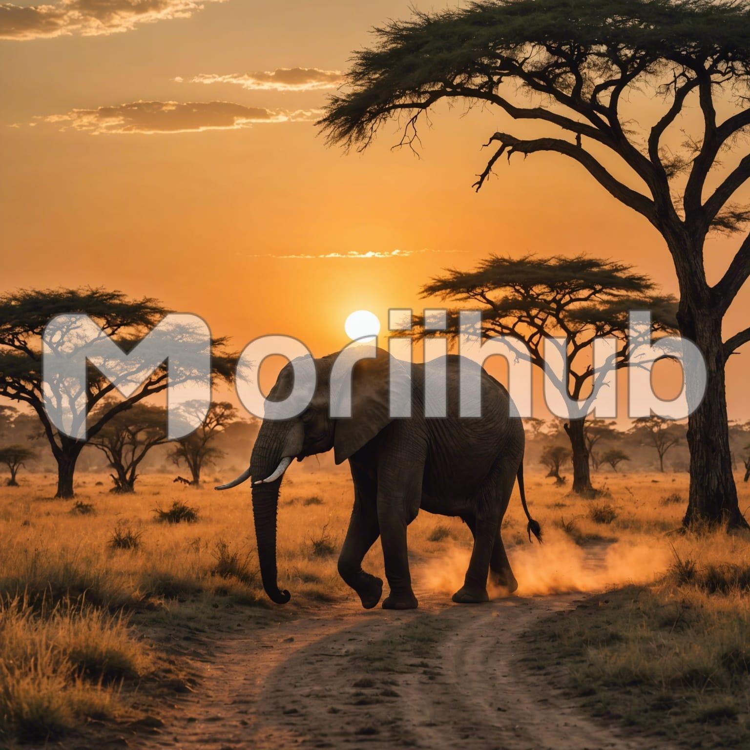Beneath the golden hues of the setting sun, an elephant moves gracefully across the vast savannah. Its majestic form casts a silhouette against the fiery sky, a testament to strength and resilience. Each step resonates with power, stirring the dusty earth beneath its massive feet. As the sun dips below the horizon, the landscape is bathed in a warm glow, painting a scene of tranquil beauty. In this fleeting moment, the elephant embodies the timeless allure of the African wilderness, a symbol of freedom and endurance amidst the endless expanse.