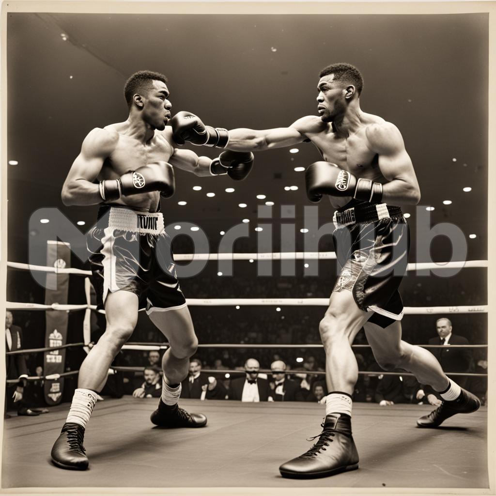 Within the boxing ring, two pugilists stand ready, gloves raised, focused on the impending clash. The air crackles with tension as spectators encircle the ring, their collective energy adding to the charged atmosphere. Faces painted with anticipation, they become witnesses to the imminent bout. The ring transforms into a theater of grit and skill, where the boxers’ movements and the spectators’ reactions weave a dynamic narrative of the sweet science in action.