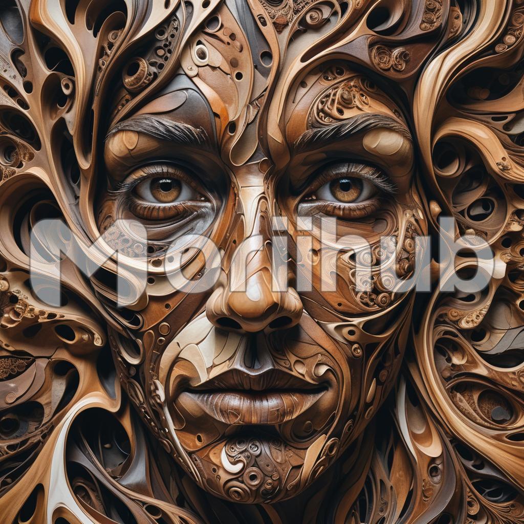 An abstract artwork in rich shades of brown portrays flowing, organic shapes that subtly form a human face, blending warmth and fluidity for a captivating, earthy expression.