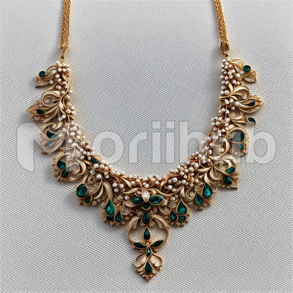 A resplendent gold necklace, a timeless embodiment of elegance and luxury, delicately drapes around the neck like a shimmering cascade of molten sunshine. Its intricate design, crafted with precision, transforms the metal into a masterpiece, symbolizing opulence and grace. This golden adornment captivates hearts, echoing tales of timeless beauty and refined sophistication.