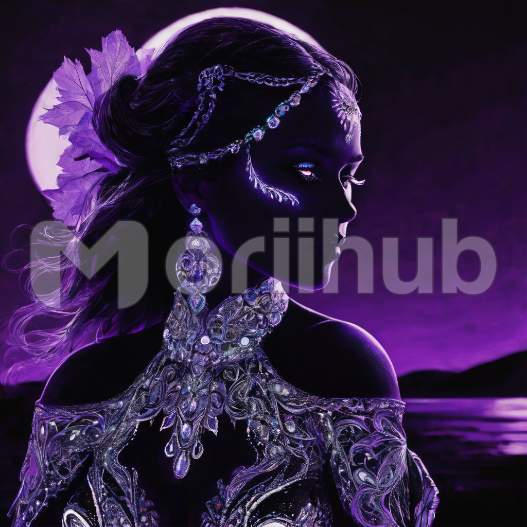 In the moon’s gentle glow, the outline of a woman emerges, draped in an intricate gown aglow with ethereal luminescence. Each curve and contour of her form is delicately highlighted by the soft radiance, casting a mesmerizing silhouette against the dark canvas of the night. Her presence exudes an air of enchantment, as if she embodies the magic of the nocturnal realm, captivating all who chance upon her graceful figure amidst the shadows.
