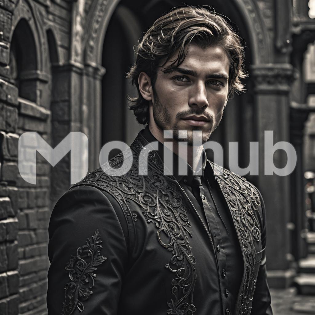 A male model on a black background creates a visually striking and impactful image. The deep black backdrop highlights the model’s features, attire, and expressions with a dramatic contrast that emphasizes their presence. Whether the model is dressed in sleek, formal wear or casual, edgy fashion, the monochromatic background ensures that all attention is focused on him. Strategic lighting can add depth, sculpting his physique and casting dynamic shadows that enhance the overall mood of the photograph.