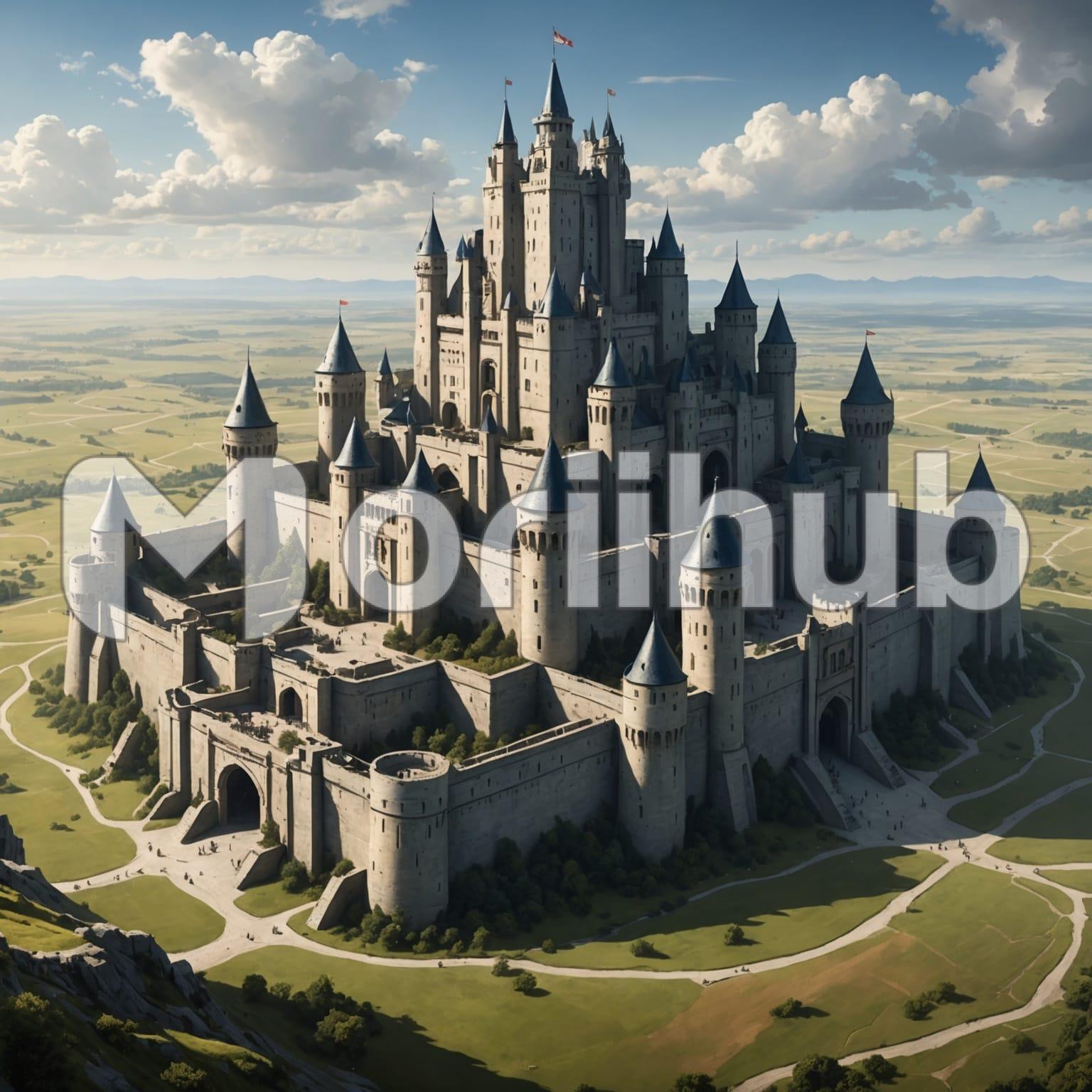 A majestic castle stands proudly in the middle of an expansive empty field, its stone walls weathered yet dignified. Towers rise high, adorned with intricate carvings that tell stories of a bygone era. The surrounding field is vast and open, allowing the grandeur of the castle to dominate the landscape. Above, soft clouds drift lazily across the sky, casting gentle shadows on the castle’s façade. This enchanting scene evokes a sense of nostalgia and wonder, inviting the imagination to roam through the history and mystery that the castle embodies amidst its serene surroundings.