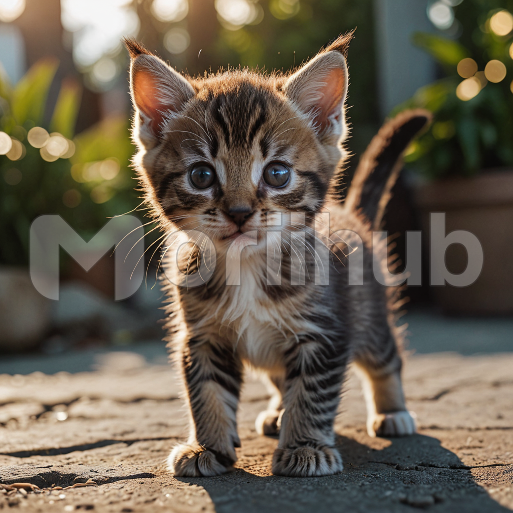 A fluffy ball of fur, a cute kitten sits perched with wide, innocent eyes that sparkle with curiosity. Its soft, rounded ears twitch with each new sound, while its tiny whiskers quiver with anticipation. With playful paws and a gentle purr, it explores the world around it, finding joy in the simplest of things. Its adorable antics and endearing charm melt the hearts of all who encounter this precious bundle of fur.