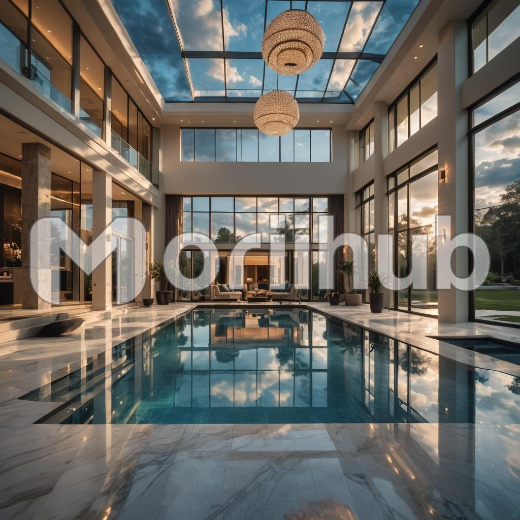 The pool’s crystal-clear water glistens under the sun, framed by a stylish deck with plush loungers and elegant outdoor furniture. Surrounding the pool, lush landscaping features tropical plants and well-placed lighting that creates a serene atmosphere. The mansion itself, with its luxurious architecture, provides a perfect backdrop, its large windows offering views of the pool area from multiple rooms. The outdoor space is designed for both relaxation and entertainment, with a shaded pergola and a chic bar area nearby. This combination of architectural splendor and recreational luxury transforms the mansion into a private oasis, where every element is tailored for comfort and sophistication.