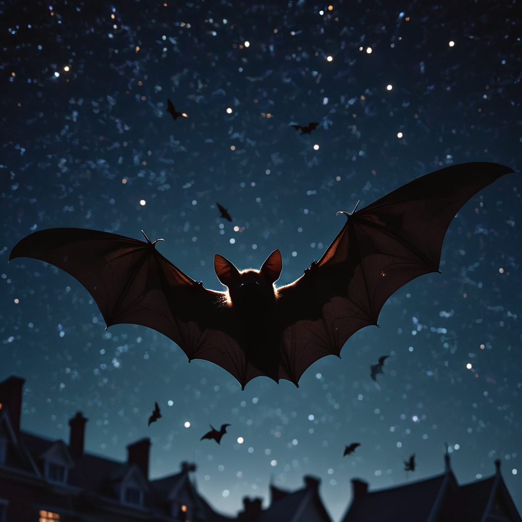 Under the blanket of a starry sky, bats take flight over the sleeping town, their silhouettes weaving intricate patterns against the indigo canvas above. With graceful wings outstretched, they navigate the nocturnal realm, their fluttering forms casting fleeting shadows upon the moonlit streets below. As they glide through the tranquil night, their presence adds an enchanting touch to the quietude, a reminder of the mystical wonders that unfold under the cloak of darkness.