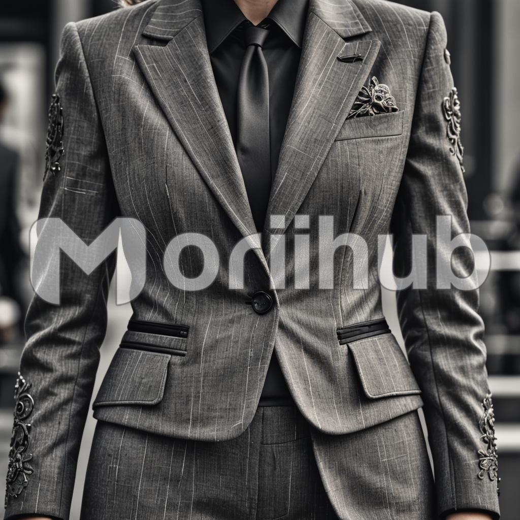 In a sophisticated ensemble, a tailored suit of muted tones, exuding understated elegance and poise. The ash gray hue lends a touch of refinement, complementing her confident demeanor. With each stride, she commands attention, epitomizing timeless style and modern sophistication, a vision of grace and power.