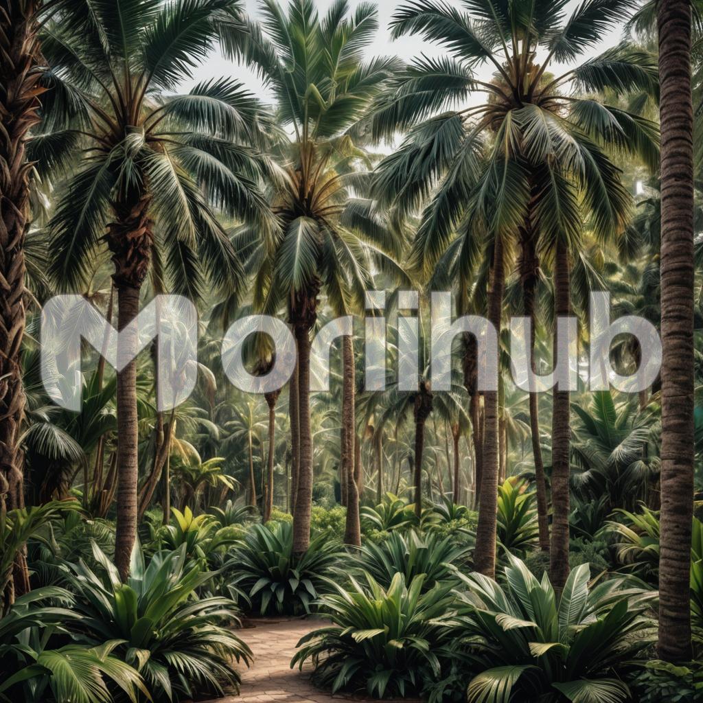 The palm garden sprawls in tranquil elegance, each frond whispering secrets of ages past. Sunlight filters through emerald canopies, dappling the earth with a mosaic of light and shadow. Amidst the rustling leaves, a symphony of birdsong dances, punctuating the serene oasis where time stands still, inviting peaceful contemplation and quiet introspection.