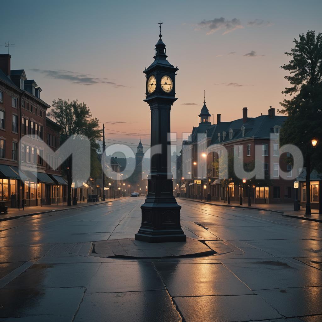 A city street scene features a large, ornate clock mounted on a wrought iron pole. The clock has a round face with Roman numerals, its hands delicately crafted from black metal. It’s positioned at the edge of a bustling sidewalk, surrounded by tall buildings with classic architecture. Pedestrians walk by, some glancing at the time, while others are absorbed in their own world. The street is lined with trees, their leaves swaying gently in the breeze. Street lamps add a nostalgic charm, complementing the timeless presence of the city clock, which stands as a silent sentinel amidst the urban rush.