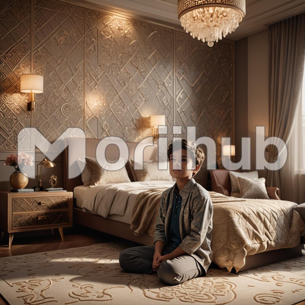 In the quiet solitude of his room, the boy sat with a thoughtful expression. The soft light from the window cast gentle shadows on the walls, creating a peaceful ambiance. Surrounded by his favorite books and toys, he seemed lost in his thoughts, perhaps reflecting on the day’s events or dreaming of adventures yet to come. The room, a sanctuary of calm, offered him a space to be himself, free from the hustle and bustle of the outside world. As he sat there quietly, time seemed to slow down, allowing him a moment of introspection and peace.
