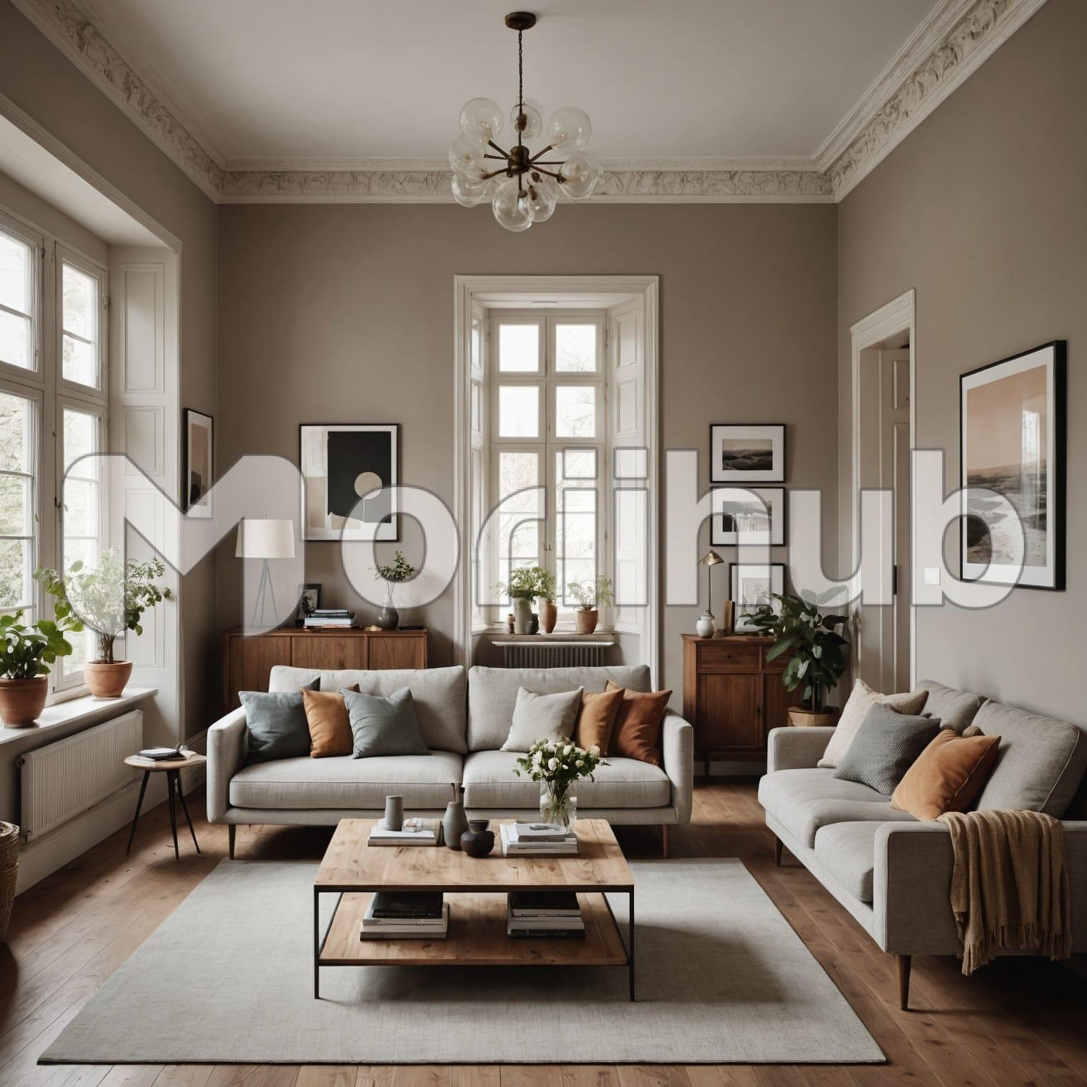 The living room welcomes you with plush couches arranged invitingly around a sleek coffee table, creating a perfect gathering space. A vibrant flower pot sits atop the table, adding a cheerful touch to the ambiance. By the window sill, potted plants bask in natural light, their greenery bringing a refreshing vibrancy to the room. Art frames line the walls, showcasing a mix of colorful prints and personal memories, infusing the space with character. Together, these elements create a warm, inviting atmosphere, perfect for relaxation and connection.