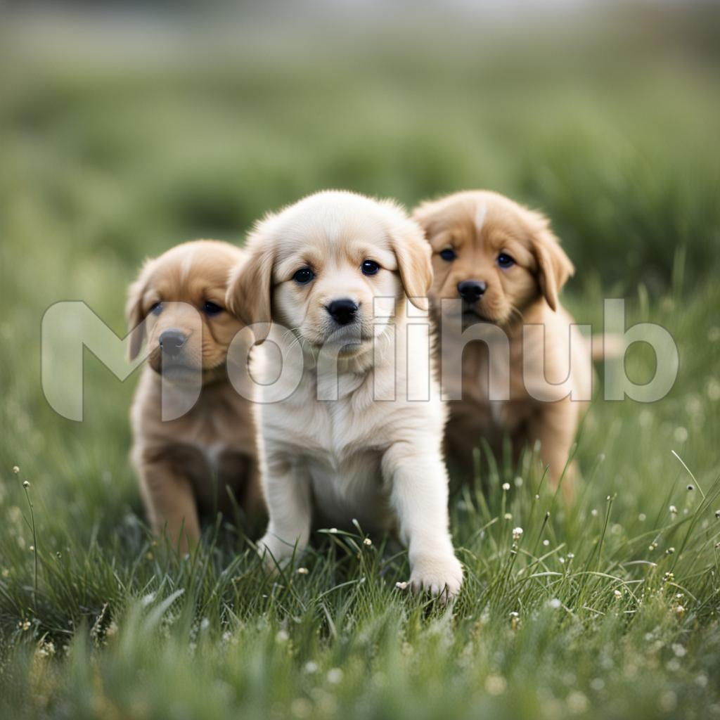 A sunlit field becomes a playground for boundless joy as a trio of adorable puppies frolic amidst tall grass. Their fur, a medley of soft hues, gleams in the sunlight as they chase each other, tongues out and tails wagging. The air is filled with their playful barks, creating a symphony of happiness against the backdrop of nature’s canvas. It’s a heartwarming scene, a celebration of youthful exuberance in the great outdoors.