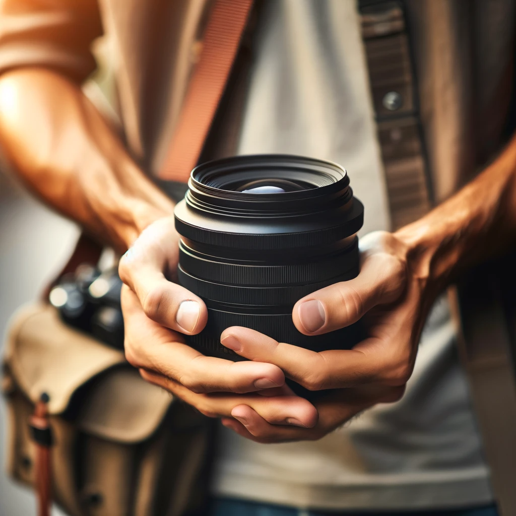 In this captivating scene, a seasoned professional photographer stands before a picturesque backdrop, clad in relaxed attire that exudes both comfort and style. With a confident yet unhurried demeanor, they cradle ‘Len,’ their cherished camera lens, in their experienced hands, ready to capture the world’s beauty through their discerning eye.