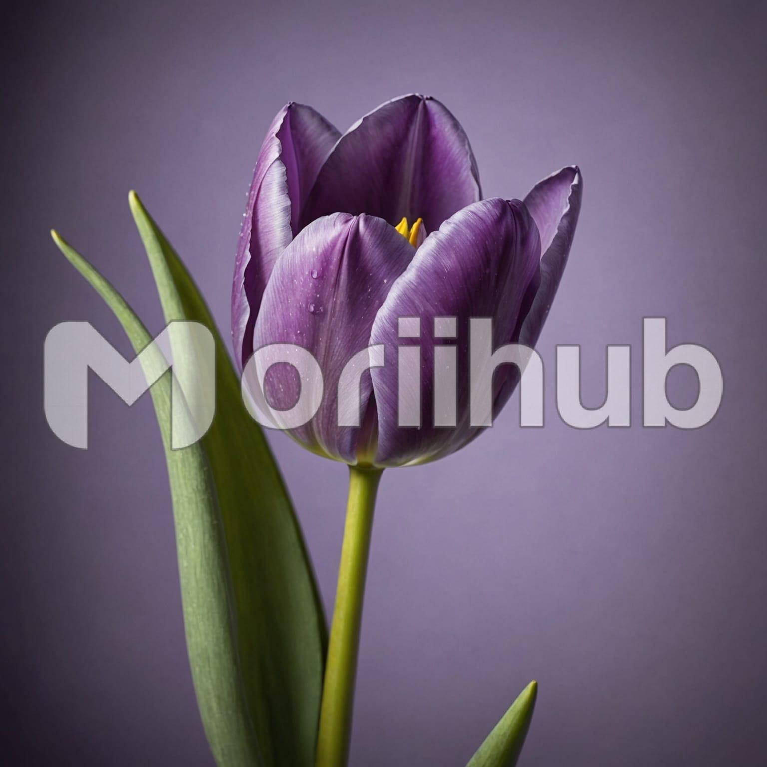 A single purple tulip stands gracefully against a plain background, its vibrant petals unfurling in delicate layers. The rich hue of the flower captures attention, drawing the eye to its intricate beauty. Each petal is perfectly formed, showcasing subtle variations in color that add depth and dimension. The stem is slender and strong, supporting the blossom with an air of quiet elegance. This simple yet striking presentation highlights the tulip’s natural charm, creating a serene and captivating scene where the flower’s splendor shines unobstructed by distractions.