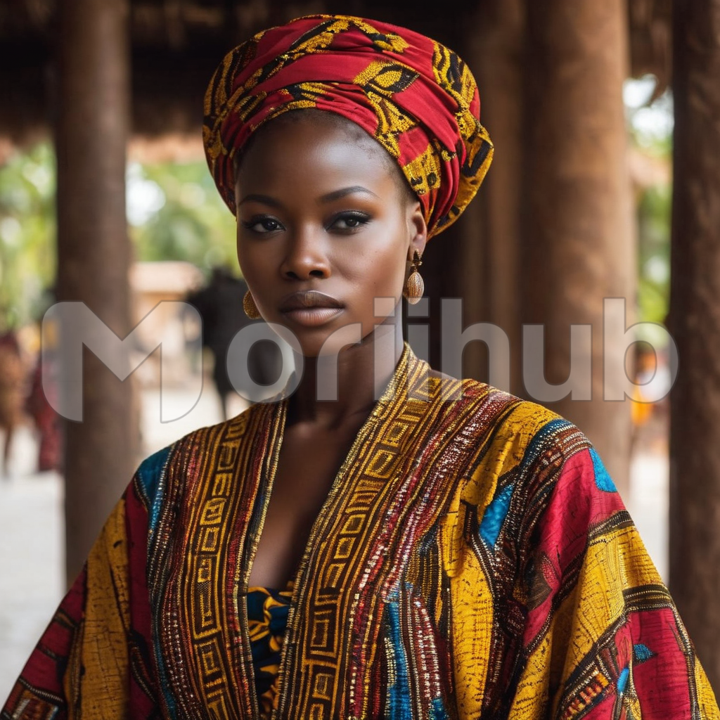 A striking African woman embraces her cultural heritage, bedecked in a radiant Ankara ensemble. The intricate headtie crowns her with regal elegance. Her attire’s vivid Ankara patterns and colors are a vibrant homage to Africa’s diversity. With a gaze of unwavering determination, she embodies the timeless beauty, strength, and pride of her ancestry, her presence an inspiring testament to her rich heritage.
