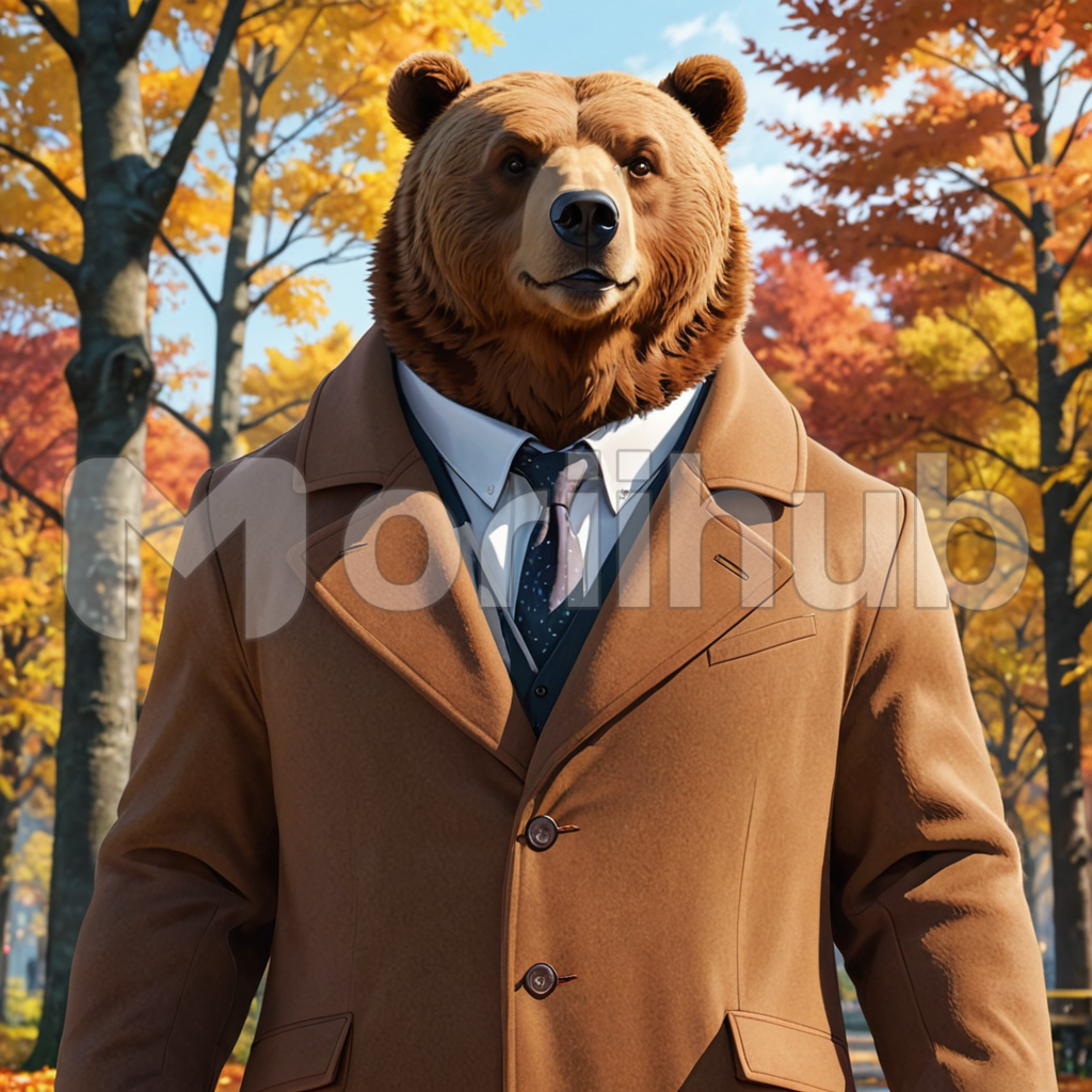 Amidst the wintry landscape, a bear ambles along, adorned in a snug overcoat. Its fur, a testament to nature’s warmth, peeks out from beneath the garment. With each lumbering step, it exudes a sense of cozy contentment, unfazed by the chilly air. The overcoat, a symbol of protection against the elements, adds a touch of whimsy to the scene. Against the backdrop of snow-covered trees, the bear’s gentle stroll embodies the harmonious coexistence of wilderness and human comfort, a charming fusion of nature and attire.