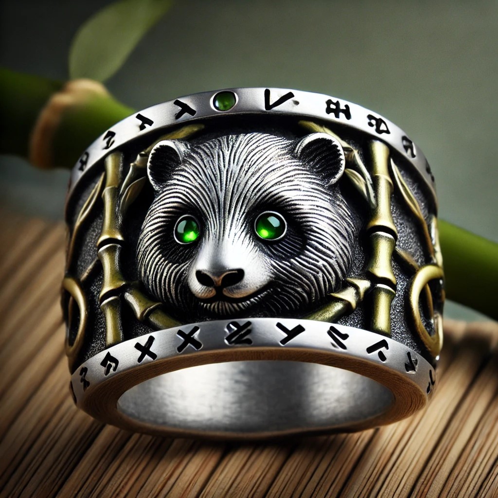 The Soul Panda Ring is a graceful and serene representation of the panda’s gentle strength, wisdom, and deep connection to harmony. Crafted from a mix of silver and dark metals, the ring features a finely detailed panda head at its center, with glowing green gemstone eyes that symbolize the panda’s bond to the soul, peace, and balance in life.