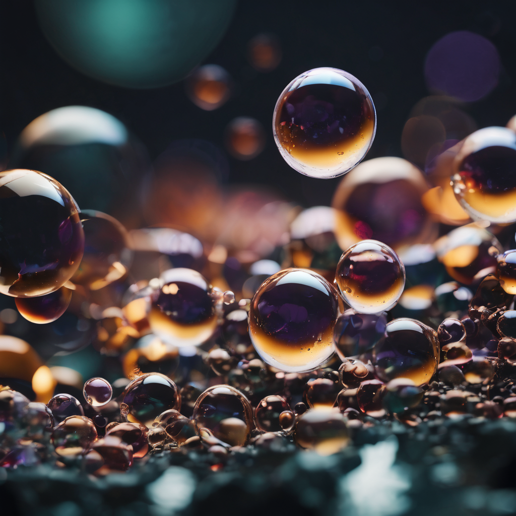 Effervescent bubbles bob and sway, their delicate forms floating weightlessly through the air. Each sphere captures the surrounding world in distorted reflections, mirroring the gentle movements of their surroundings. Born from playful breaths, they drift aimlessly, carried by the subtle currents of the atmosphere. In their fleeting existence, they embody the simple joys of spontaneity and whimsy, a transient spectacle of lightness and delight amidst the tapestry of the world.