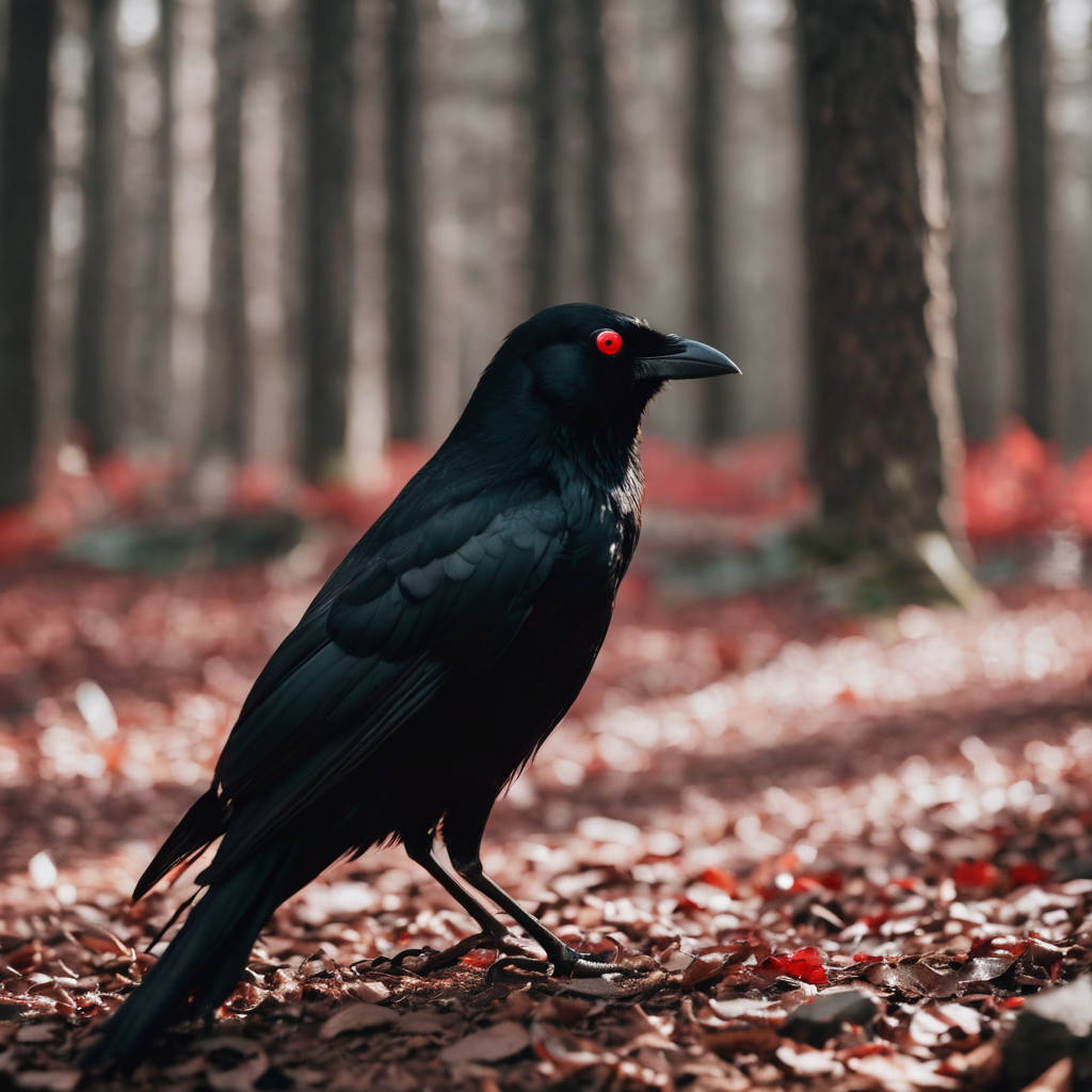 In the dappled light of the forest, a solitary crow perches upon the mossy floor, its sleek feathers a stark contrast against the earthy backdrop. With beady eyes keenly observing its surroundings, it exudes an aura of quiet intelligence and curiosity. The rustle of leaves underfoot and the distant calls of woodland creatures provide a serene soundtrack to its solitary vigil. It’s a moment of natural harmony, where the wild embraces the essence of life itself.