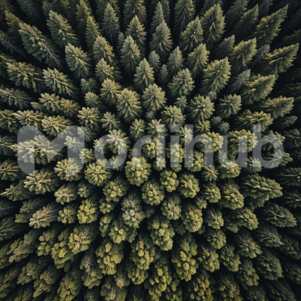 A drone view of a thick forest offers a mesmerizing perspective, showcasing a vast expanse of lush greenery and towering trees. From above, intricate patterns of foliage create a natural tapestry, with sunlight filtering through the dense canopy, casting dappled shadows on the forest floor. The view captures the biodiversity and serenity of untouched wilderness, revealing winding paths, clearings, and the tranquil rhythm of nature’s untouched beauty.