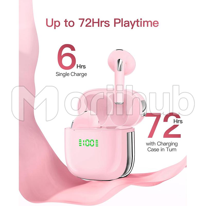 72Hrs Playback & Dual LED Power Display: Earbuds offer up to 6hrs of playback on a single charge and up to 72 hours in turn with the charging case, which allows you can enjoy an entire day of audio. Headphones wireless bluetooth feature a dual digital display that makes you can easily monitor the battery level, ensuring timely charging. You can recharge the earbuds wireless bluetooth with the included type-C cable or wireless charging via a Qi-certified charging pad (not included).