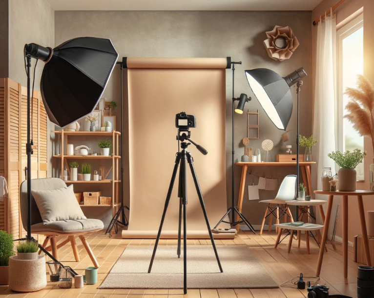 Lighting is key to professional photography. If natural light isn’t reliable in your chosen space, consider investing in softbox lights, LED panels, or ring lights. A basic two-light setup—key and fill light—is a great place to start. You can also use reflectors to bounce light and eliminate shadows.