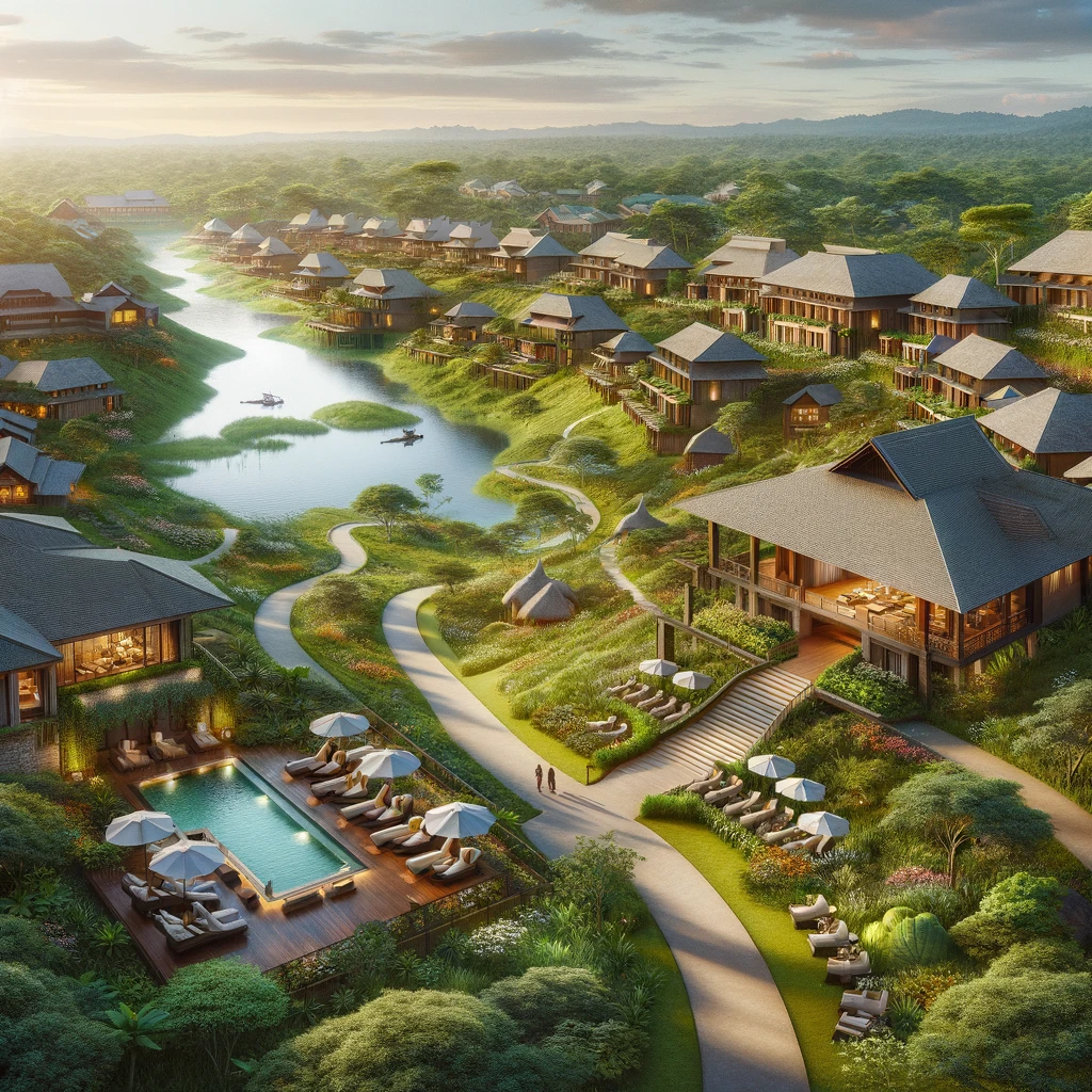 Nestled in the heart of pristine nature, this resort epitomizes a harmonious blend of comfort and natural beauty. Elegantly designed, it seamlessly integrates with its surroundings. Luxurious cottages offer modern amenities while preserving the serenity of the environment. Lush gardens, meandering trails, and panoramic views create an oasis of relaxation and adventure, promising guests a tranquil escape amidst the splendor of nature.