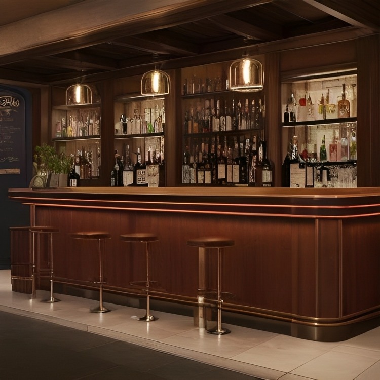 Under the cloak of darkness, the night unveils a vibrant tapestry of colors within the illuminated bar. A myriad of bottles, resplendent in their varied hues, line the shelves, casting a mesmerizing glow. Patrons gather amidst the ambient chatter, clinking glasses filled with an eclectic array of drinks, as the bar becomes a kaleidoscope of liquid delights, each sip a journey into the intoxicating symphony of the night.