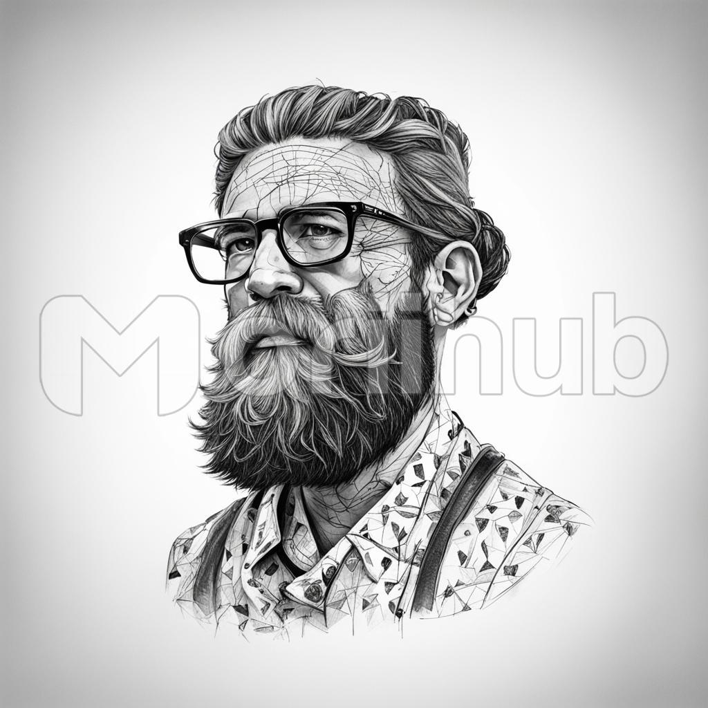 Captured in monochrome allure, a hipster’s face emerges with timeless style. Thick-framed glasses perch atop a nose adorned with character. The black and white palette adds a touch of vintage sophistication, emphasizing the intensity of thoughtful gaze and the eclectic charm that defines the essence of the modern hipster aesthetic.