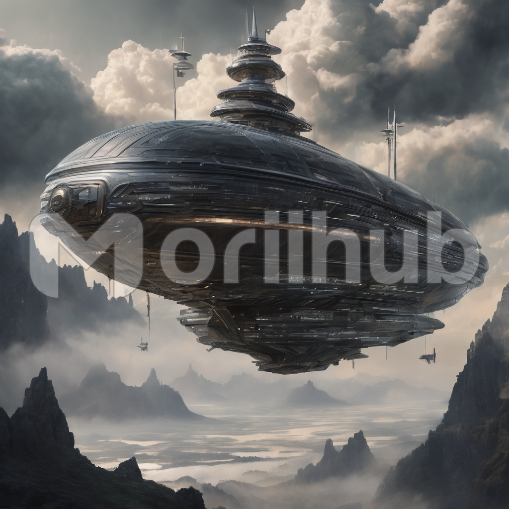 A majestic blimp glides leisurely over the tranquil sea, its bulbous form casting a serene shadow on the calm waters below. Jagged rocks protrude from the surface, remnants of ancient guardians standing steadfast against the ebb and flow. Above, fluffy clouds meander lazily across the sky, mirroring the leisurely pace of the blimp. In this serene tableau, nature’s elements converge, creating a scene of tranquil beauty amidst the timeless expanse of the sea.