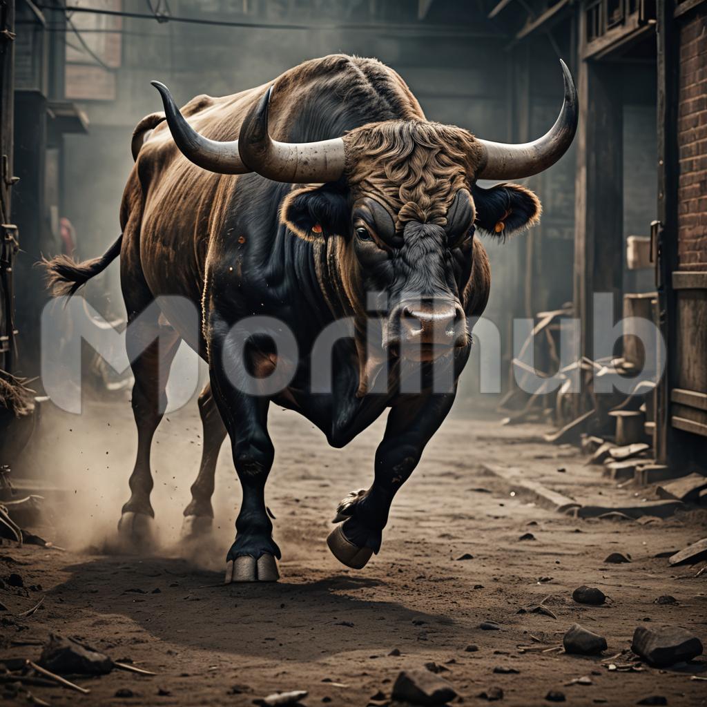 With powerful strides, the bull charges forward, its muscles rippling beneath sleek fur. Dust rises in its wake, a testament to its raw strength and untamed spirit. Eyes ablaze with determination, it forges ahead, a symbol of resilience and tenacity in motion, unstoppable in its pursuit of freedom.