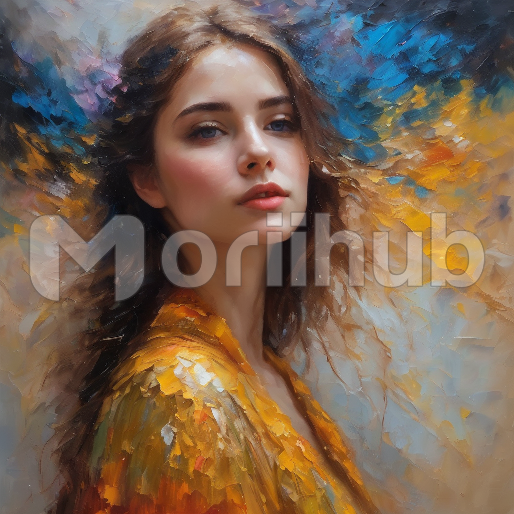 In this captivating oil painting, a woman emerges as a masterpiece of artistry. Her ethereal presence is rendered with intricate brushstrokes that capture the essence of her grace and poise. The interplay of light and shadow accentuates her features, unveiling the depth of her character. The palette of colors creates a harmonious fusion of warmth and elegance, bringing the woman’s captivating allure to life on the canvas, a timeless testament to the beauty of human expression through art.