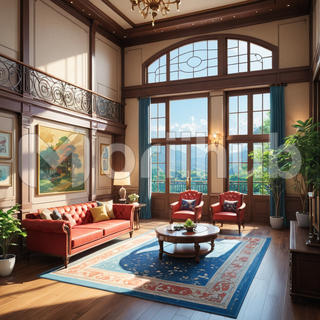 In the spacious living room, plush couches surround a stylish coffee table, inviting relaxation and conversation. Adorning the walls, captivating pieces of art add depth and character to the room’s ambiance. Sunlight streams through the expansive window, casting a warm glow upon the polished floor. The room is alive with a tranquil energy, as soft hues and elegant décor create a harmonious space. In this serene setting, the interplay of light and shadow lends a timeless charm, making it a haven of comfort and beauty.