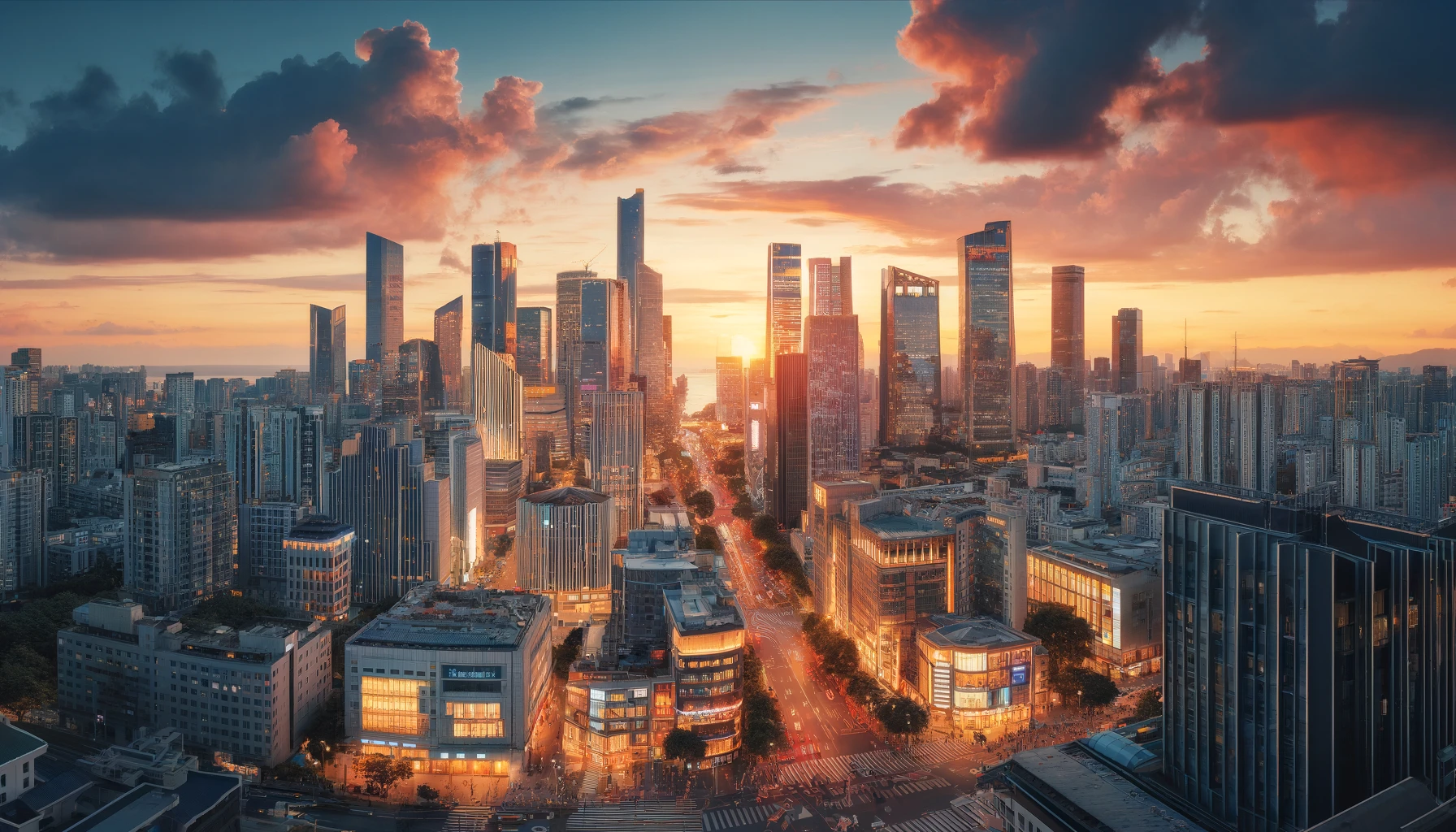 As the sun sets over the bustling capital city, a panoramic view reveals a skyline dominated by towering skyscrapers. Each building boasts modern architecture, their sleek facades reflecting the warm hues of the twilight sky. Amidst the urban sprawl, the city buzzes with life, a testament to progress and innovation.