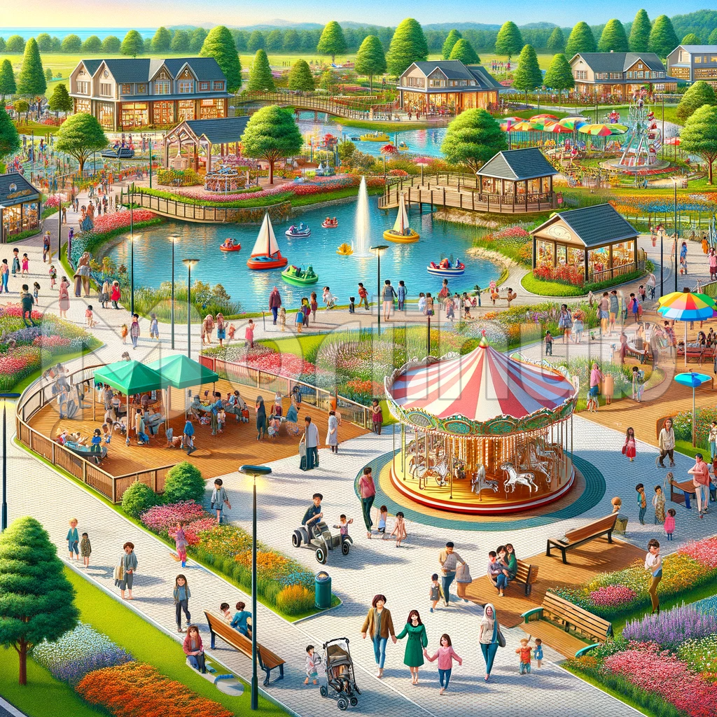 In this lively and delightful image, a pleasure park bursts with an array of attractions and activities, infusing the atmosphere with boundless fun and unbridled joy. Laughter and excitement fill the air as families and friends explore thrilling rides, colorful carousels, and whimsical games. Cotton candy vendors and ice cream stalls offer sweet treats, while vibrant balloons float overhead, adding to the festive ambiance. It’s a place where happiness knows no bounds, a haven of merriment and shared moments.