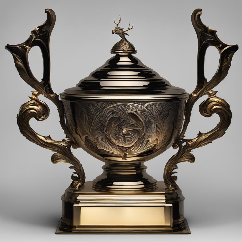 The brass cup trophy, resplendent in its regal design, stands as a symbol of triumph. Its gleaming surface boasts intricate detailing, an artful testament to craftsmanship. Topped with a dignified cover, the trophy exudes a timeless elegance, capturing the essence of achievement with a blend of metallic brilliance and refined sophistication.